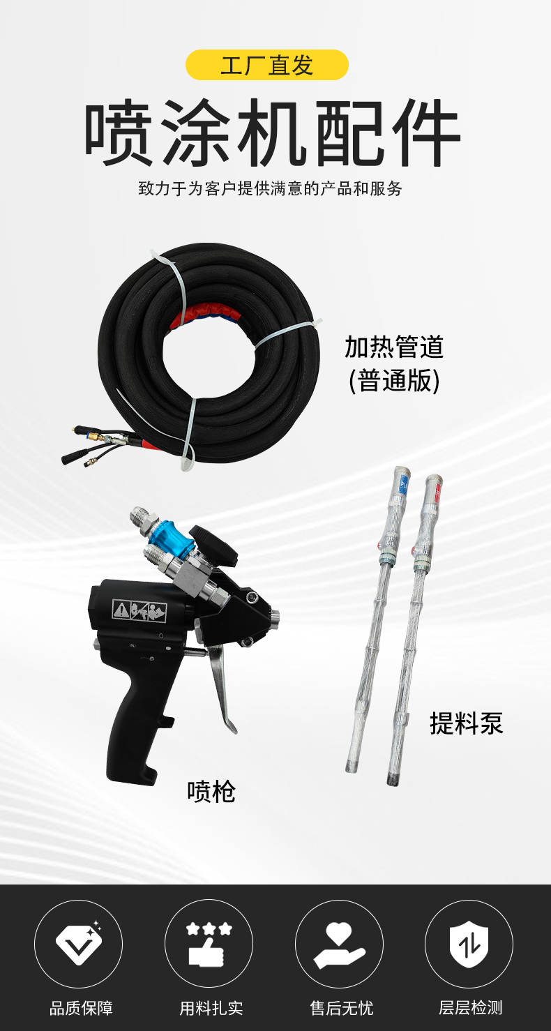 这些配件以 “用料扎实、设计实用” 为核心特点,从物料输送、温控保护到喷涂操作,形成了完整的作业支撑体系。无论是高粘度物料的冬季施工,还是长时间连续喷涂作业,这套配件都能有效提升设备的稳定性与作业效率,是喷涂施工中不可或缺的实用工具。